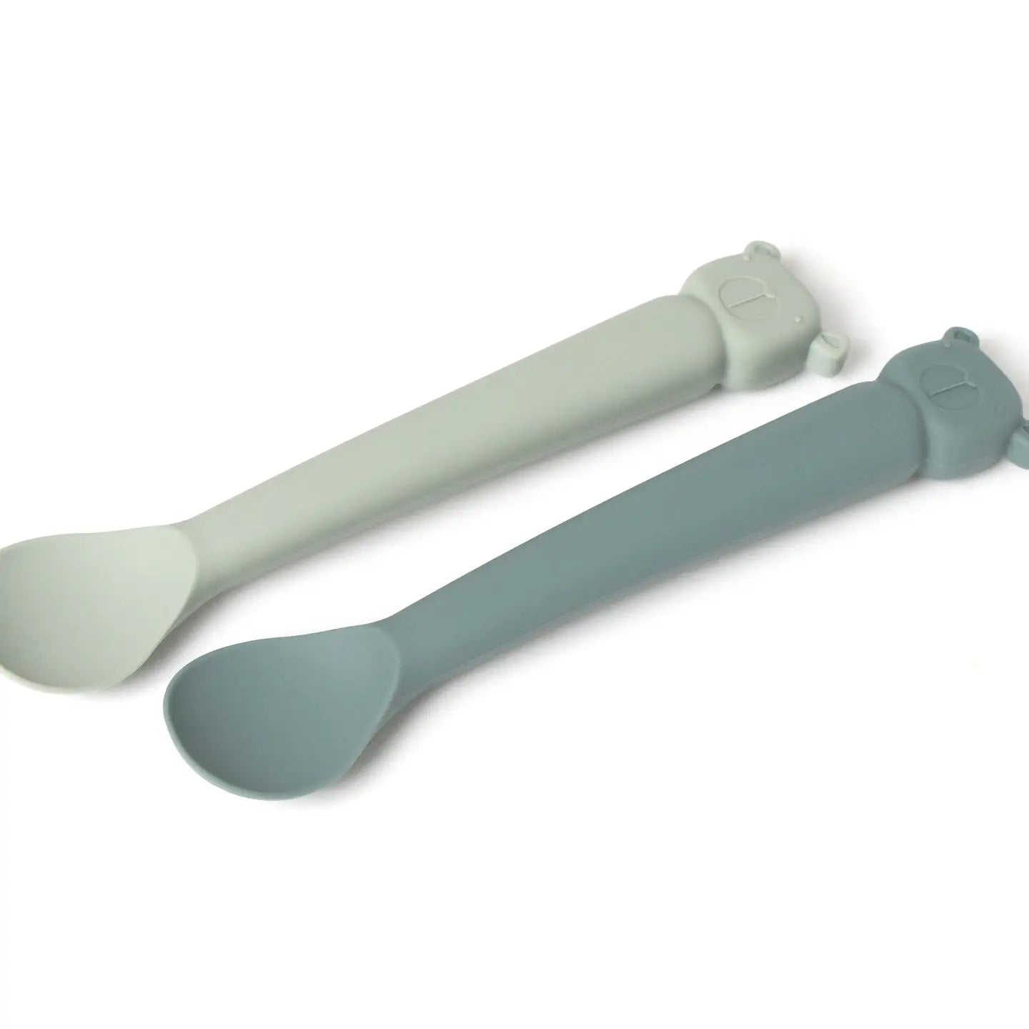 Praktisk sett med to langhåndterte skjeer i myk silikon, designet for barn som er i startfasen med å spise selv. Den brede skjeen med myk tupp er skånsom mot munnen, og gjør måltidene både tryggere og mer behagelige.