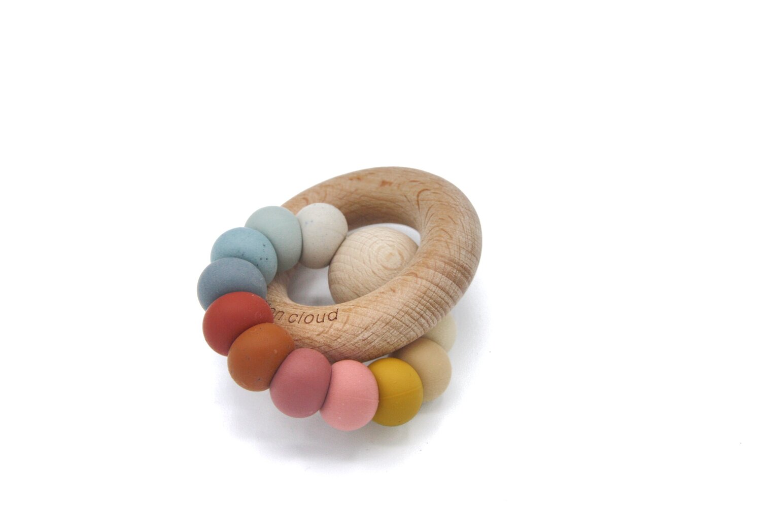 Denne biteringen i høykvalitets silikon og tre er laget for å gi komfort når barnet får tenner. Den er helt fri for BPA, BPS, PVC, ftalater og bly, så du kan være trygg på at den er sikker å bruke.
