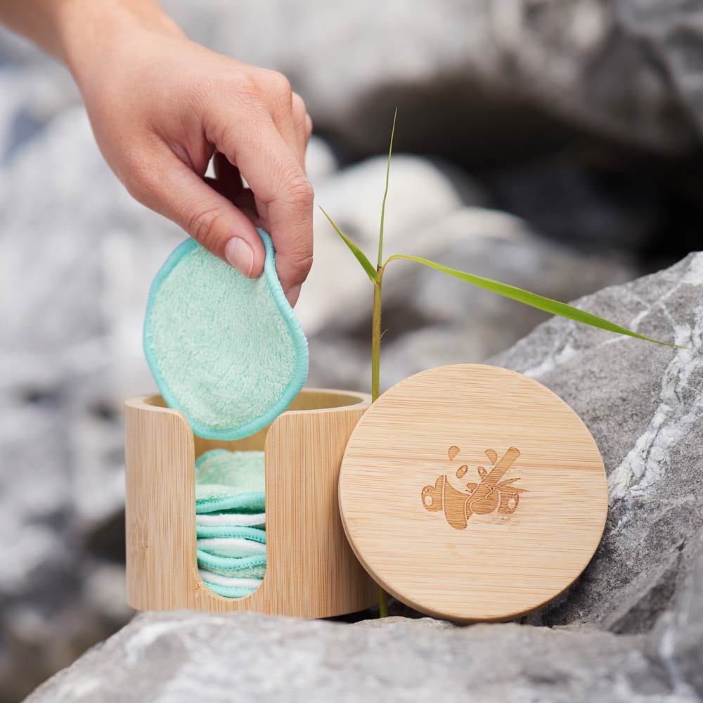 - Materiale: Pads og vaskepose i 100 % økologisk bomull | Oppbevaringsboks i 100 % ubehandlet bambus