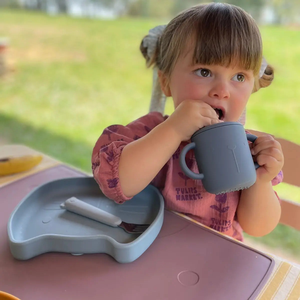 Denne praktiske tallerkenen i høykvalitets silikon sitter godt fast takket være den smarte sugekoppen, som hindrer at barnet skyver eller velter den under måltidet. Silikonen er matgodkjent, BPA-fri og uten skadelige tilsetningsstoffer, noe som gjør den trygg for de minste.